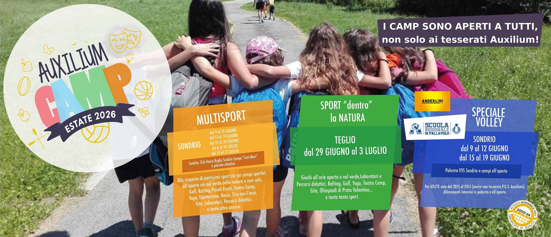 Per TUTTI i bambini e le bambine (NON solo tesserati AUXILIUM), nati dal 2012 al 2018: giochi all'aria aperta e nel verde, Rafting, Golf, laboratori, percorsi didattici, le Olimpiadi di Prato Valentino, il Teatro Camp, gite e tanto tanto sport.